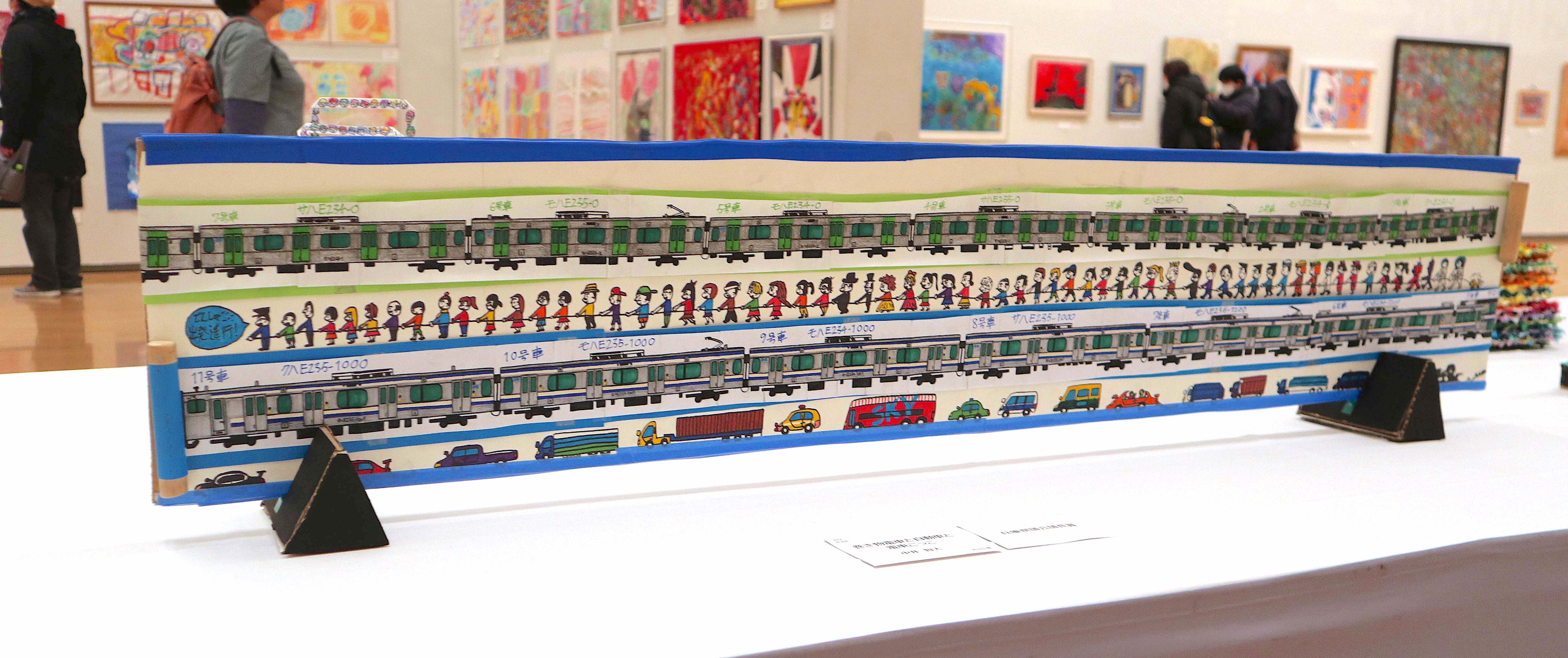 「巻物電車と自動車と電車ごっこ」